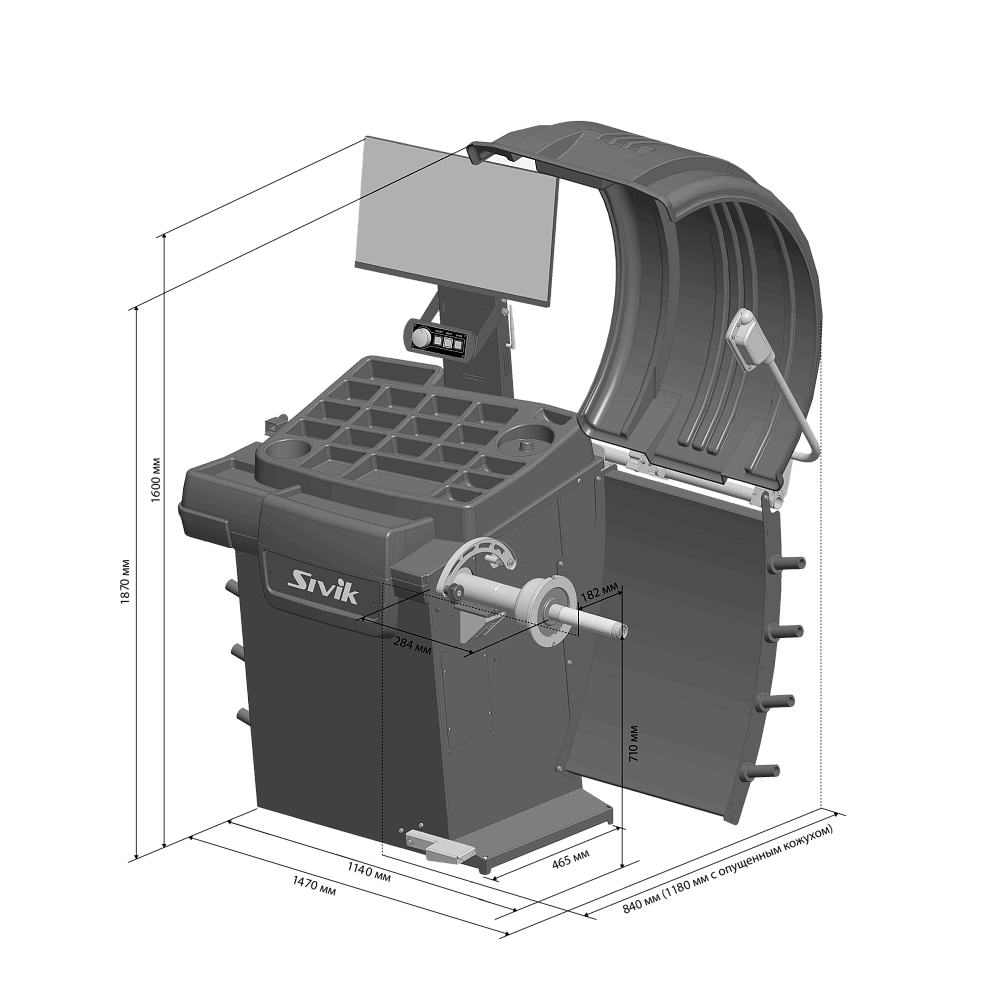 • Вал станка максимально смещен к оператору. Сохранен большой вылет вала - 284 мм. Удобно обслуживать даже самые большие и широкие колеса.