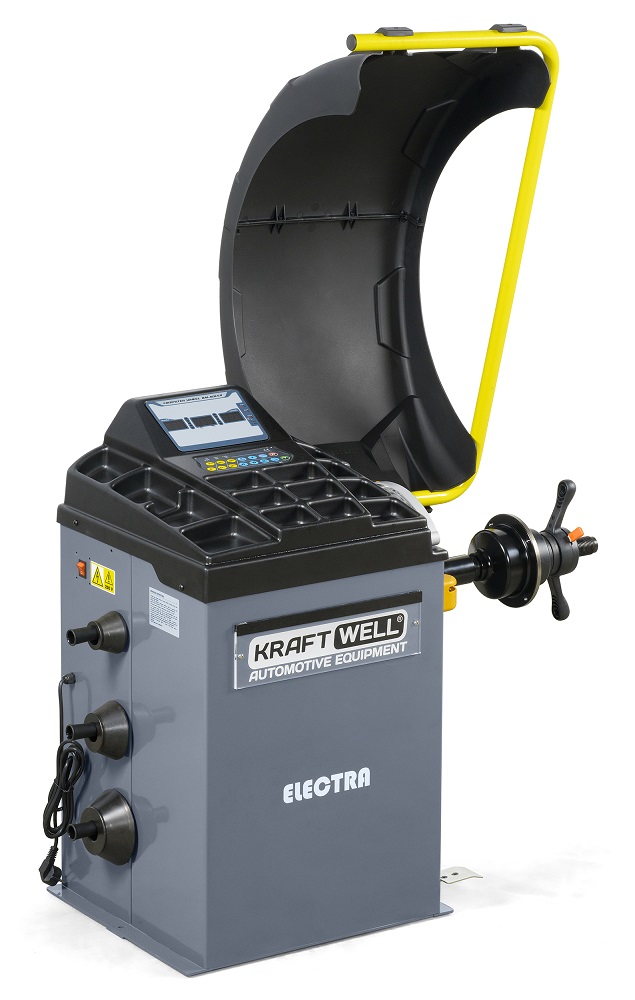 ELECTRA KraftWell Станок балансировочный, автоматический ввод 2-х параметров, цифровой LED дисплей, напряжение 220 В, диаметр дисков 10-24", вес колеса 65 кг, вал 36 мм.