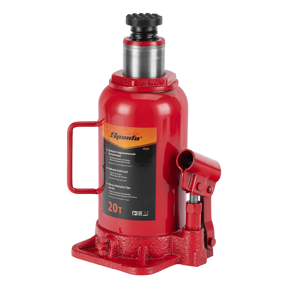 Домкрат гидравлический бутылочный, 20 т, h подъема 250-470 мм Sparta