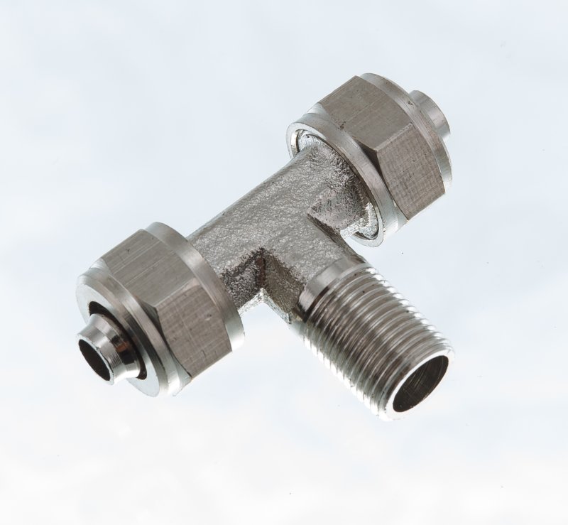 Фитинг (тройник). Применяется для соединения пневмолинии в поворотном распределителе. Размер: 1/8" Диаметр шланга: 8мм