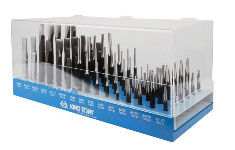 Стенд с зубилами, кернерами, выколотками и бородками, 90 предметов KING TONY 1090PR1
