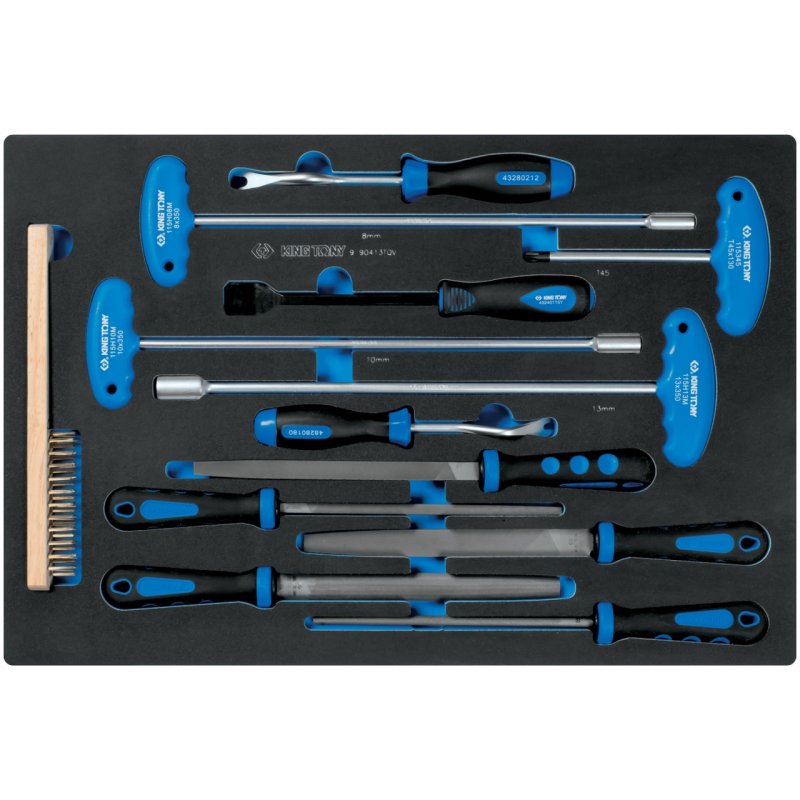 KING TONY Набор напильников, ключей торцевых Т-типа, съемники клипс и металлическая щетка, ложемент, 13 предметов KING TONY 9-90413TQV купить в Волгограде цена ✅ - Все для СТО
