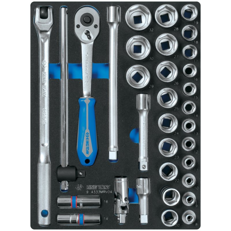 KING TONY Набор торцевых головок 1/2" с принадлежностями, шестигранные, ложемент, 33 предмета KING TONY 9-4333MRV04 купить в Волгограде цена ✅ - Все для СТО