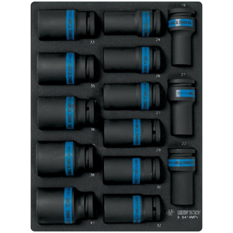 KING TONY Набор ударных глубоких торцевых головок 3/4", ложемент, 14 предметов KING TONY 9-6414MPV