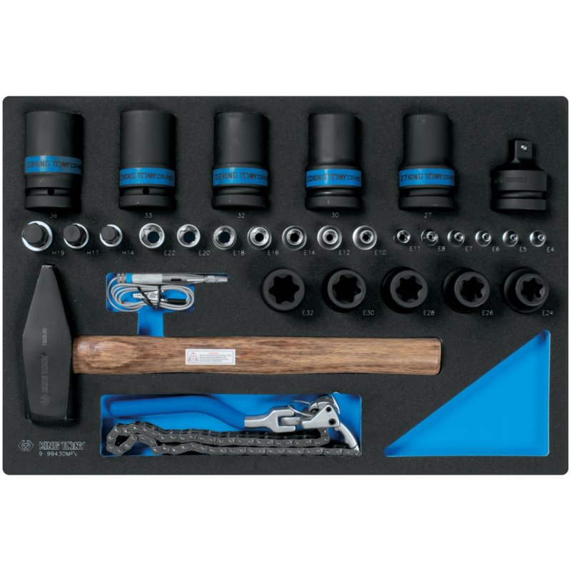 KING TONY Набор ударных головок 1", головок Torx Е-стандарт, молоток, съемник, тестер, ложемент, 30 предметов KING TONY 9-99430MFV купить в Волгограде цена ✅ - Все для СТО