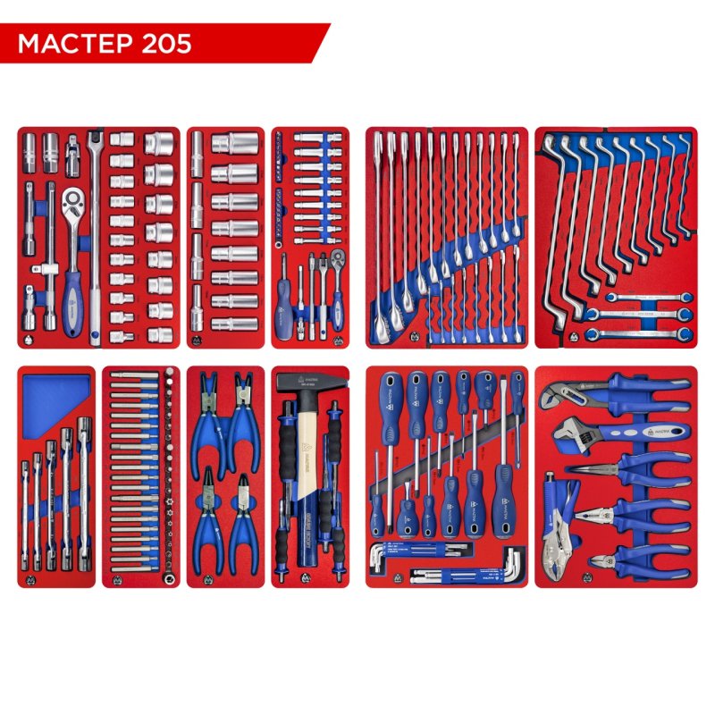 МАСТАК Набор инструментов "МАСТЕР" для тележки, 11 ложементов, 205 предметов купить в Волгограде цена ✅ - Все для СТО