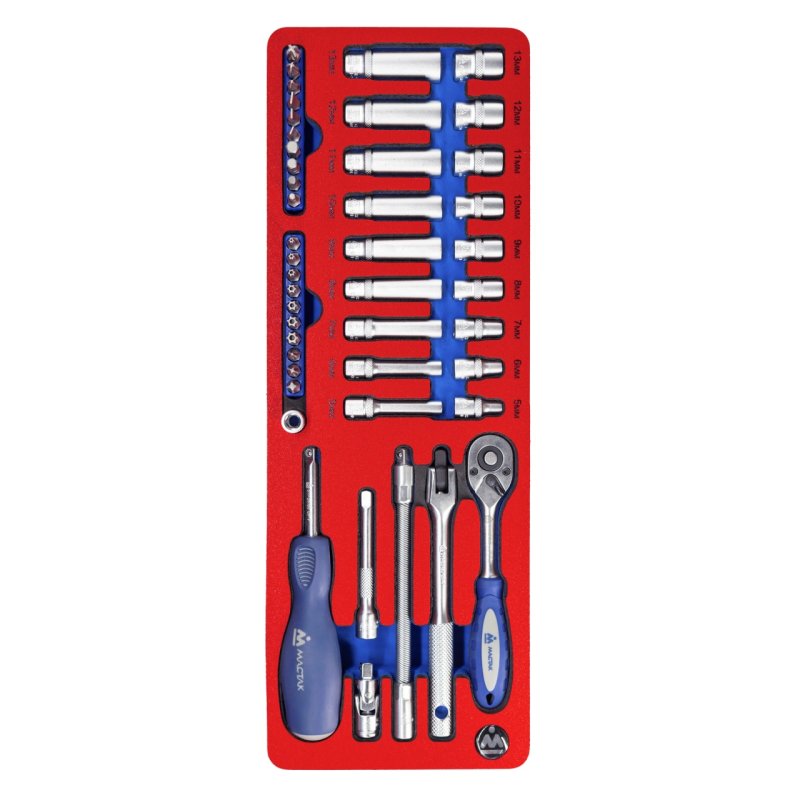 МАСТАК Набор торцевых головок 1/4” с принадлежностями, ложемент, 45 предметов МАСТАК 5-002045