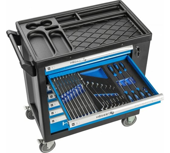 HOEGERT TECHNIK HT7G050 – это ваша мобильная мастерская, которая обеспечит организованное хранение, надежную защиту и удобную транспортировку ваших инструментов, позволяя вам работать эффективно и профессионально в любом месте!