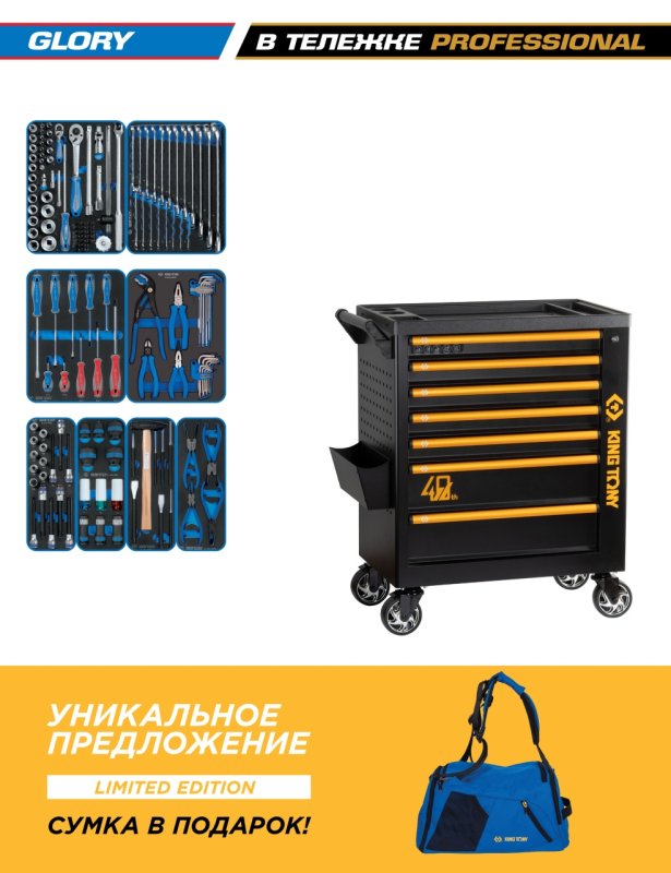 Набор инструментов 152 предмета, "GLORY", в черной тележке KING TONY 9G38-152MRV40 купить в Волгограде цена ✅ - Все для СТО