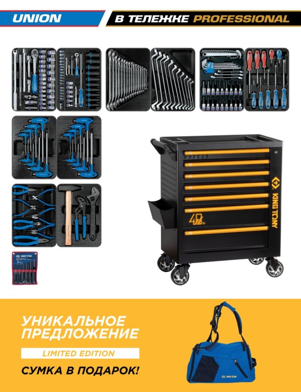 Набор инструментов 173 предмета, "UNION", в черной тележке KING TONY 9G38-000MR40 купить в Волгограде цена ✅ - Все для СТО