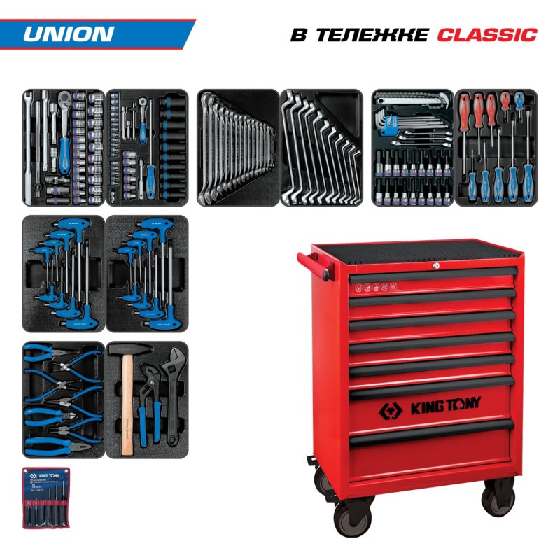 Набор инструментов 173 предмета, "UNION", в красной тележке KING TONY 934-000MR купить в Волгограде цена ✅ - Все для СТО
