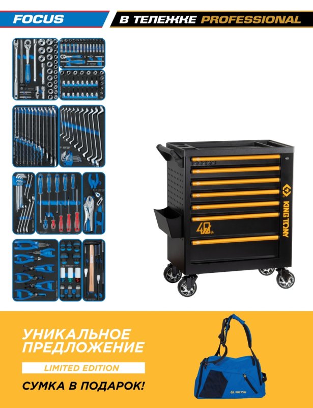 Набор инструментов 188 предметов, "FOCUS", в черной тележке KING TONY 9G38-188MRV40 купить в Волгограде цена ✅ - Все для СТО
