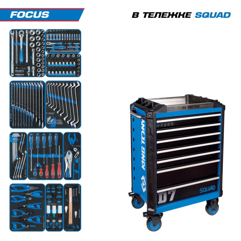 Набор инструментов 188 предметов, "FOCUS", в синей тележке KING TONY 9SQ31-188MRV купить в Волгограде цена ✅ - Все для СТО