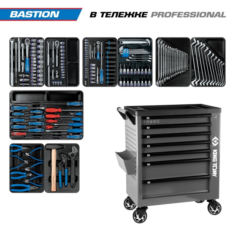 Набор инструментов 204 предмета, "BASTION", в серой тележке KING TONY 9G38-100MRG купить в Волгограде цена ✅ - Все для СТО