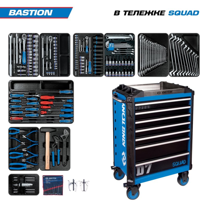 Набор инструментов 204 предмета, "BASTION", в синей тележке KING TONY 9SQ31-100MR купить в Волгограде цена ✅ - Все для СТО