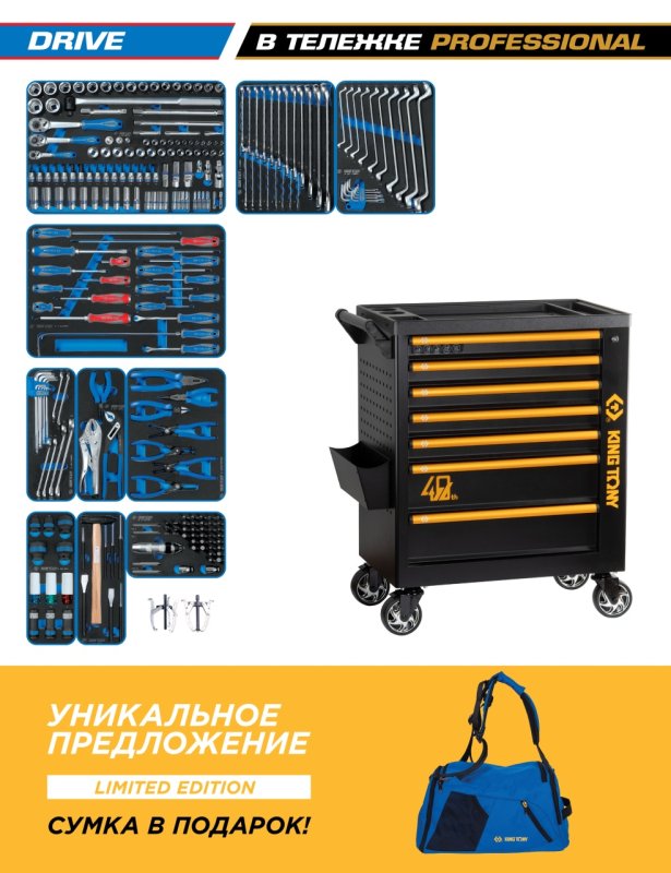 Набор инструментов 251 предмет, "DRIVE", в черной тележке KING TONY 9G38-251MRV40 купить в Волгограде цена ✅ - Все для СТО