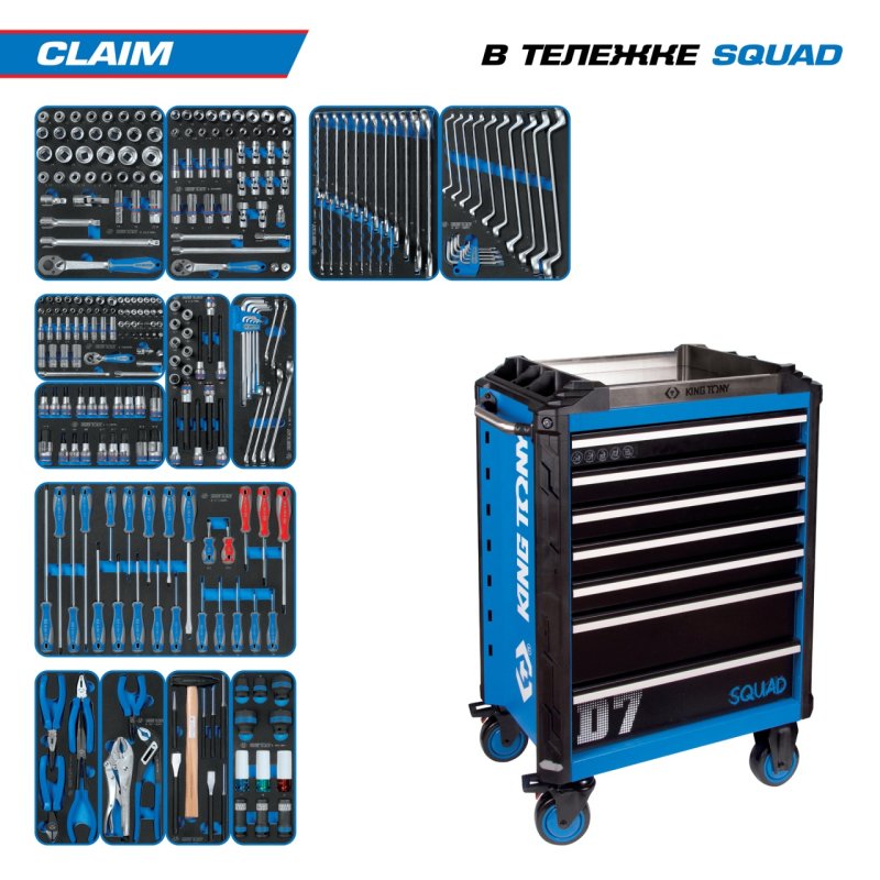 Набор инструментов 286 предметов, "CLAIM", в синей тележке KING TONY 9SQ31-286MRV купить в Волгограде цена ✅ - Все для СТО