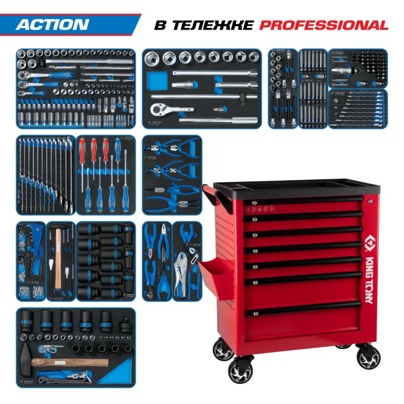 Набор инструментов 327 предметов, "ACTION", в красной тележке KING TONY 9G38-327MRVR купить в Волгограде цена ✅ - Все для СТО