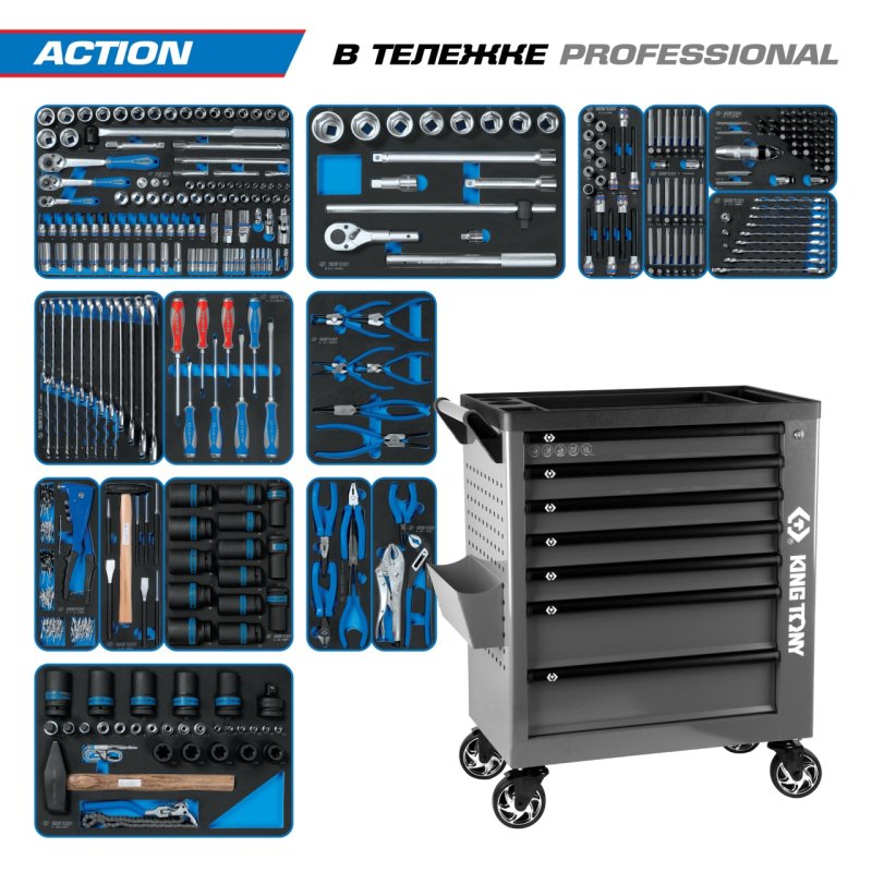 Набор инструментов 327 предметов, "ACTION", в серой тележке KING TONY 9G38-327MRVG купить в Волгограде цена ✅ - Все для СТО