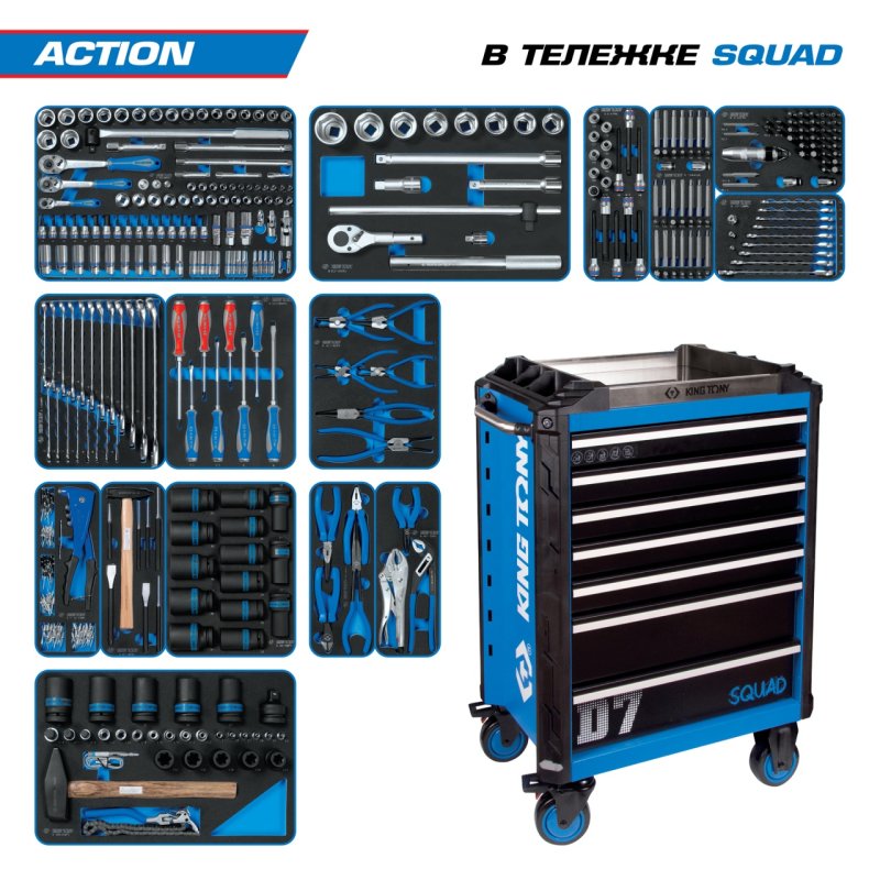 Набор инструментов 327 предметов, "ACTION", в синей тележке KING TONY 9SQ31-327MRV купить в Волгограде цена ✅ - Все для СТО