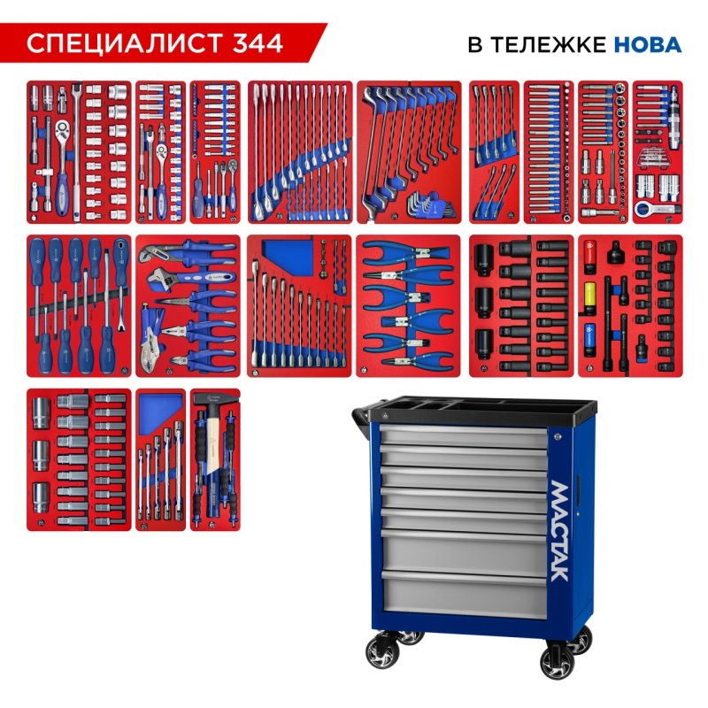 Набор инструментов 344 предмета, "СПЕЦИАЛИСТ 344", в синей тележке МАСТАК 50-07344B купить в Волгограде цена ✅ - Все для СТО