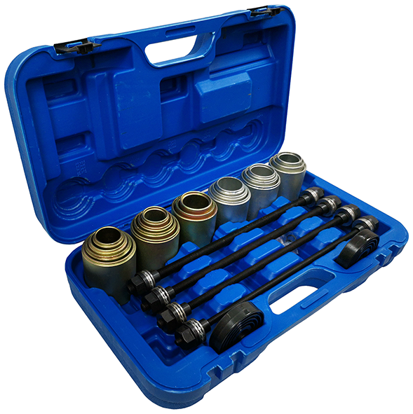 Набор для монтажа и демонтажа подшипников и сайлентблоков универсальный позволяет производить замену подшипников, сайлентблоков и втулок.