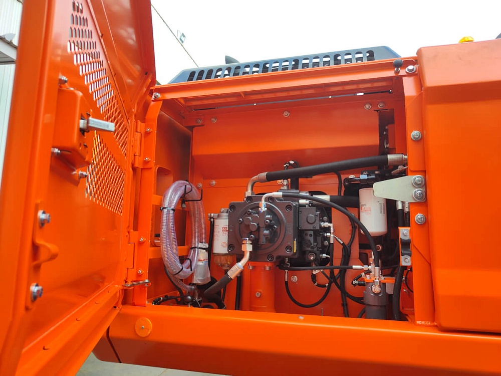 Сочетает в себе передовые технологии и комфорт. Большая площадь остекления кабины, джойстиковое управление и кондиционер создают удобные условия работы, а цветной LCD монитор с электронной системой контроля позволяет следить за состоянием машины. Централизованная система смазки и защитные элементы, такие как металлическая защита нижнего лобового стекла, увеличивают надежность и срок службы экскаватора.