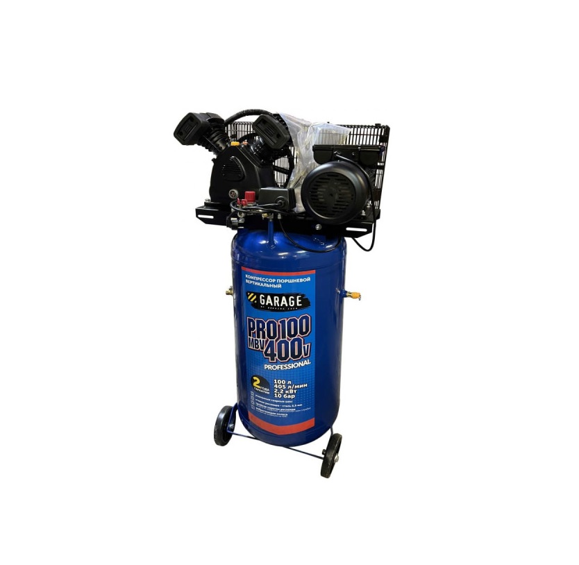 Вертикальный компрессор для экономии места. Для профессиональных работ. Воздушный, передвижной, поршневой, масляный. Давление 10 Атм. Производительность 400 л/мин. Мощность 2.2 кВт. Напряжение 220В. Ёмкость ресивера 100 л.