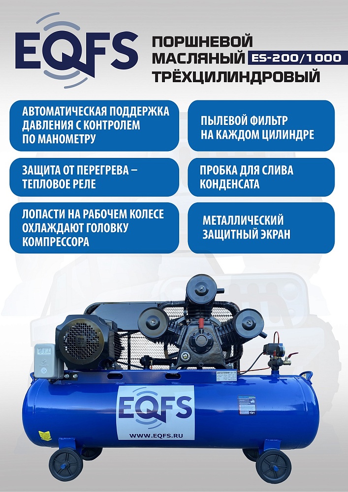 ES-200/1000 Компрессор поршневой трехцилиндровый 200 литров