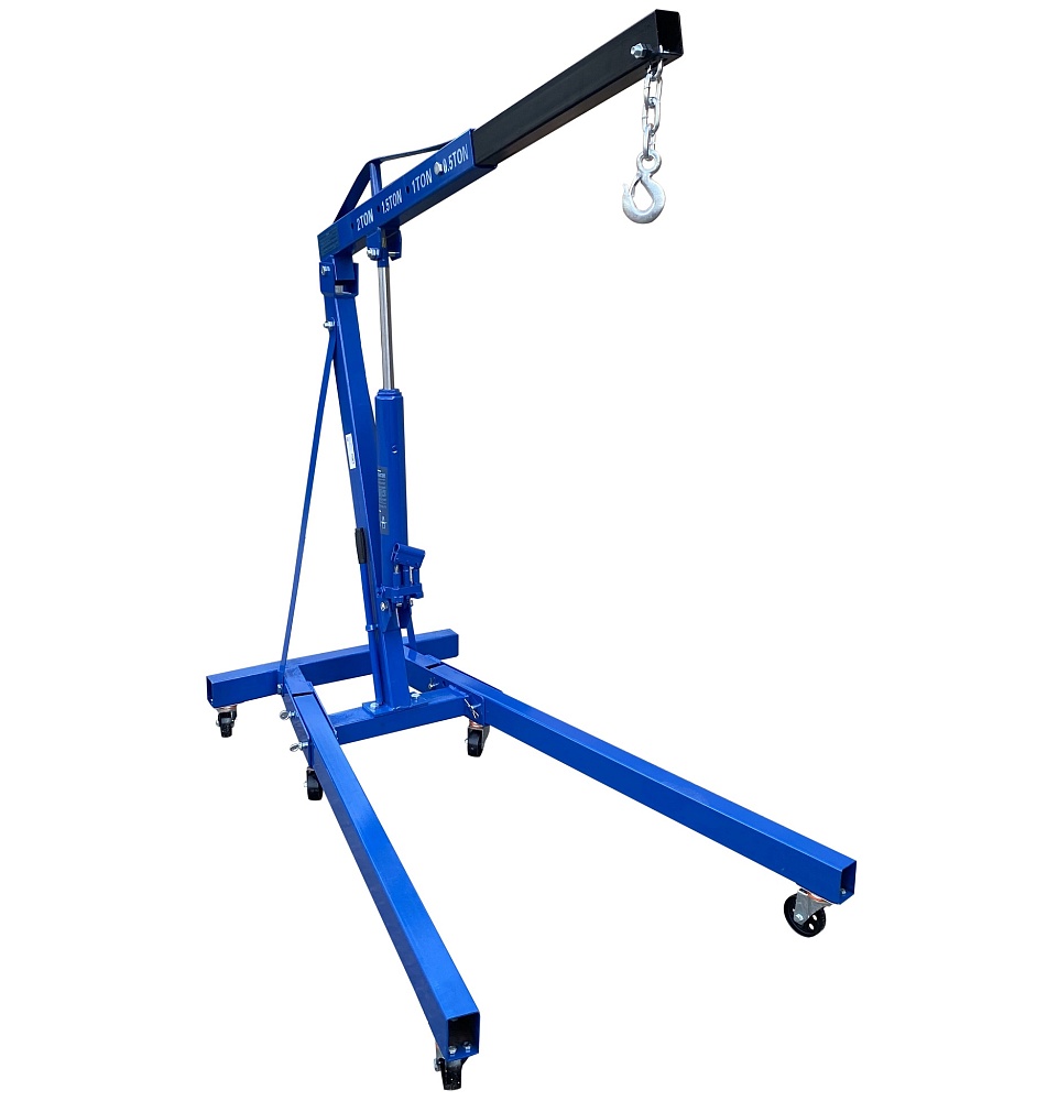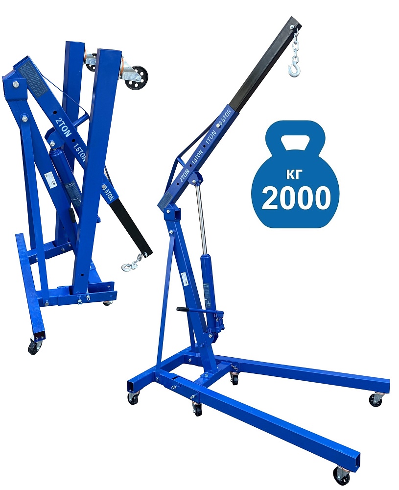 Для профессионального применения. Вес: 74,5 кг. Складной. Грузоподъемность 2т. Двухплунжерный насос-быстрый подъем. Рабочий диапазон стрелы 900-1510 мм. Высота подъёма крана от пола цеха – 0÷2420 мм. Для подъема и транспортировки автомобильных узлов, агрегатов и любых других грузов как внутри помещения, так и на улице. Вынос стрелы регулируется в соответствии с максимальной грузоподъемностью крана – 500-1000-1500-2000кг.