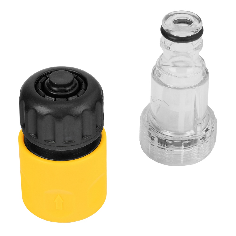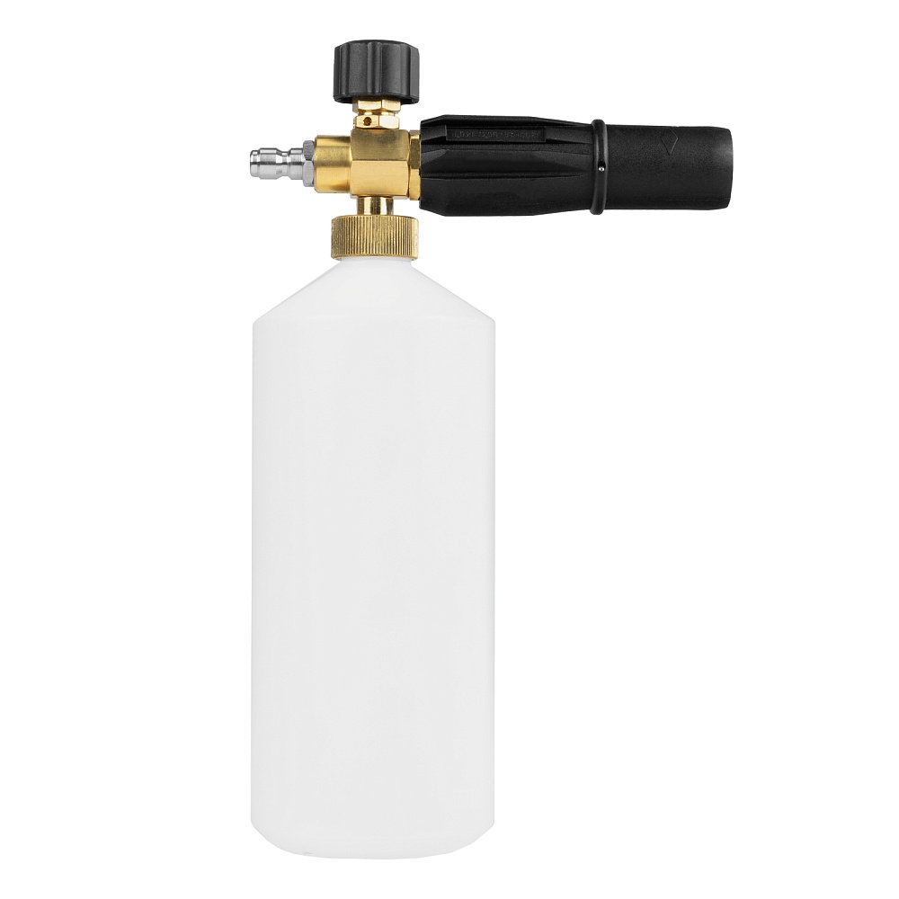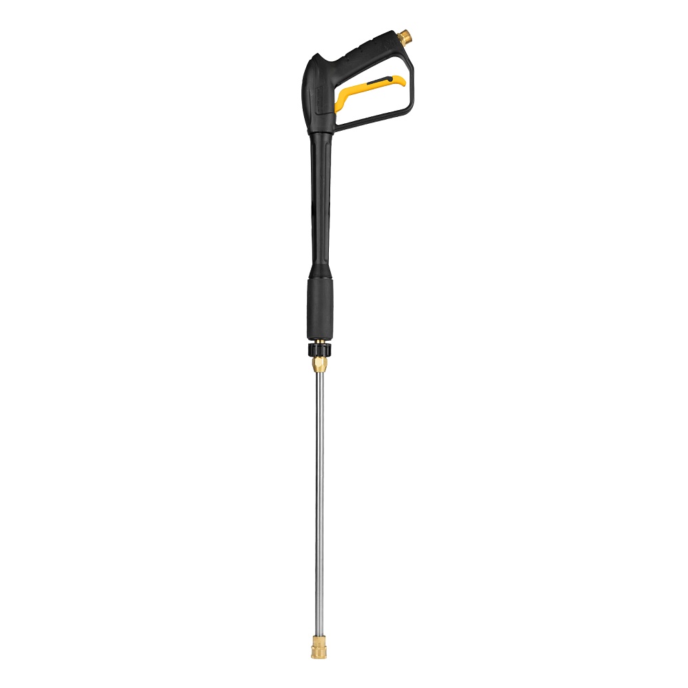 Мойка высокого давления, Шланг высокого давления, Пистолет моечный, Насадка-удлинитель, Форсунки 4 шт., Пеногенератор с бачком для моющего средства, Входной штуцер с фильтром, быстросъемный коннектор шланга, Игла для прочистки сопла, Инструкция по эксплуатации с гарантийным талоном