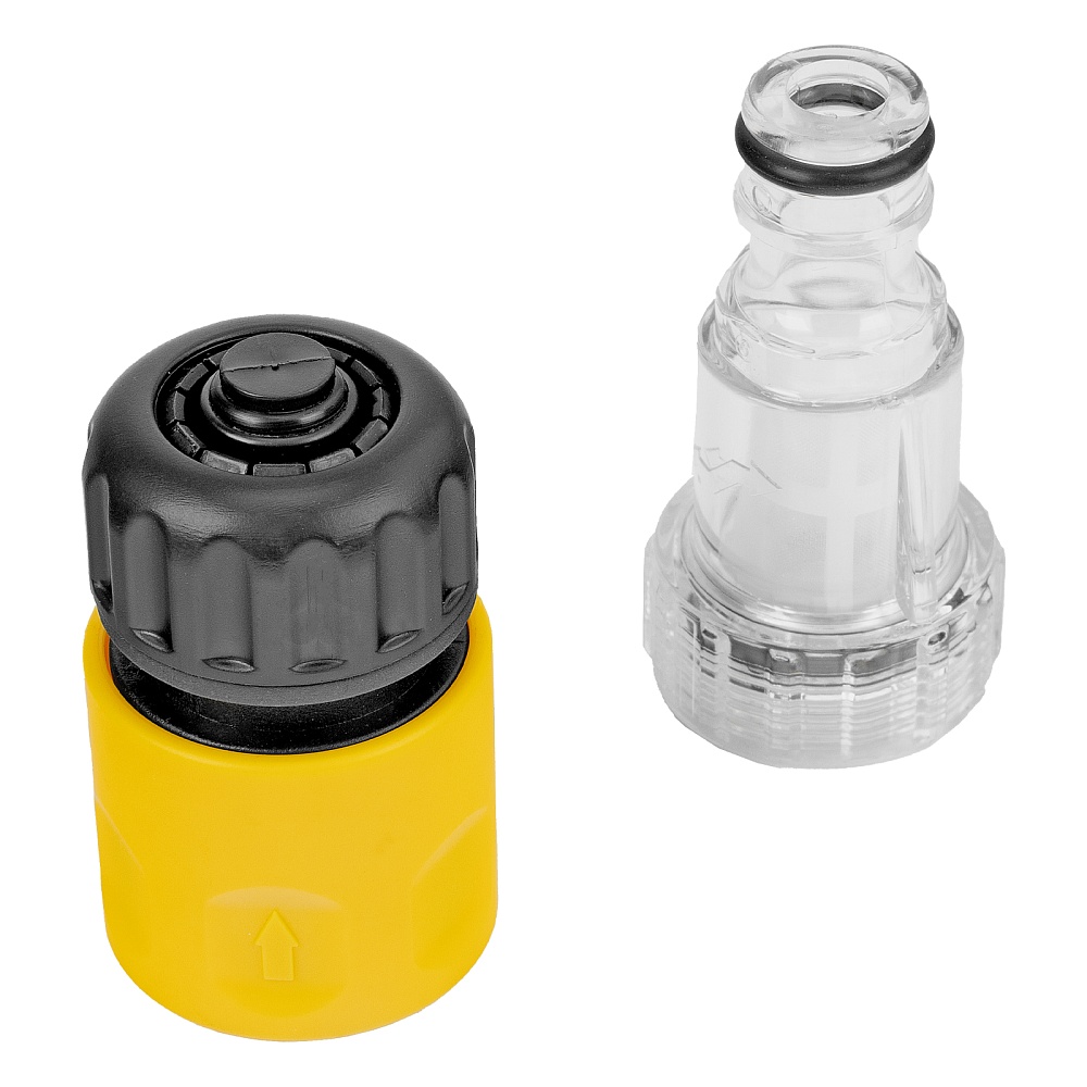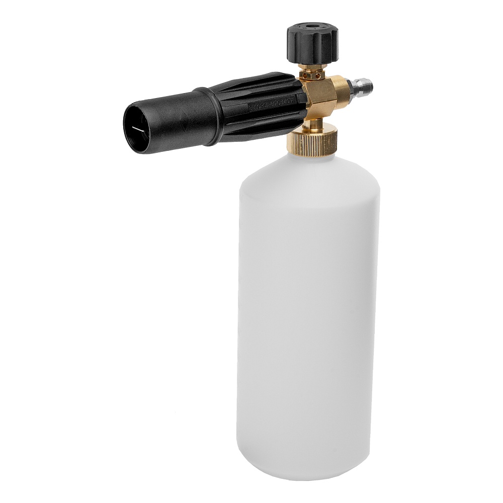 Мойка высокого давления, Шланг высокого давления, Пистолет моечный, Насадка-удлинитель, Форсунки 4 шт., Пеногенератор с бачком для моющего средства, Входной штуцер с фильтром, быстросъемный коннектор шланга, Игла для прочистки сопла, Инструкция по эксплуатации с гарантийным талоном