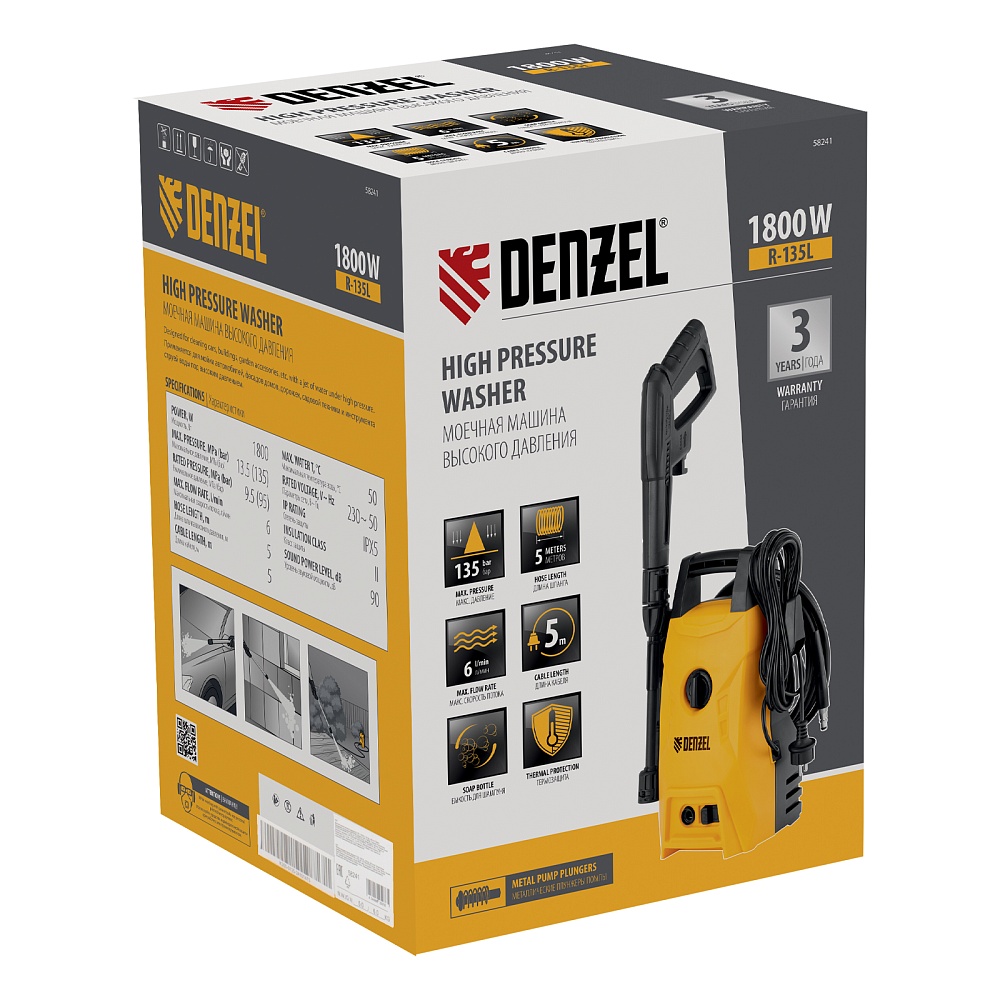 Моечная машина высокого давления R-135L, 1800 Вт, 135 бар, 360 л/ч Denzel купить в Волгограде цена ✅ - Все для СТО