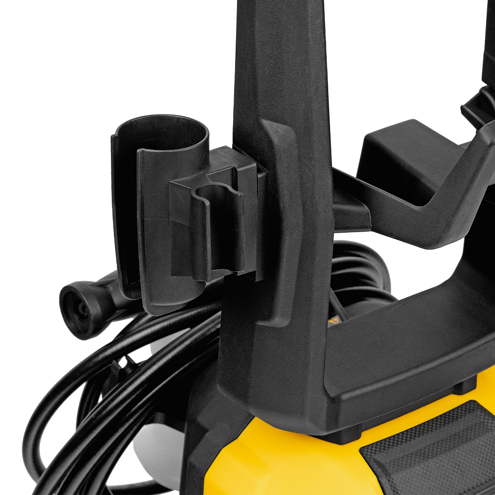 Мойка высокого давления, Кронштейн для шланга, Шланг высокого давления, Пистолет, Удлинитель пистолета с регулируемым соплом, Пеногенератор с бачком для моющего средства, Входной штуцер с фильтром, Быстросъемный коннектор шланга, кронштейн-держатель пистолета, Кронштей сетевого кабеля, Игла для прочистки сопла, Комплект крепежа, Инструкция с гарантийным талоном