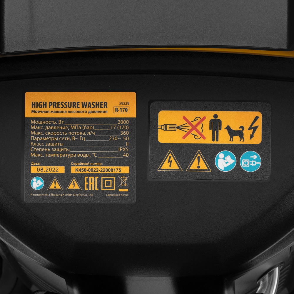 Моечная машина высокого давления R-170, 2000 Вт, 170 бар, 360 л/ч, колесная Denzel