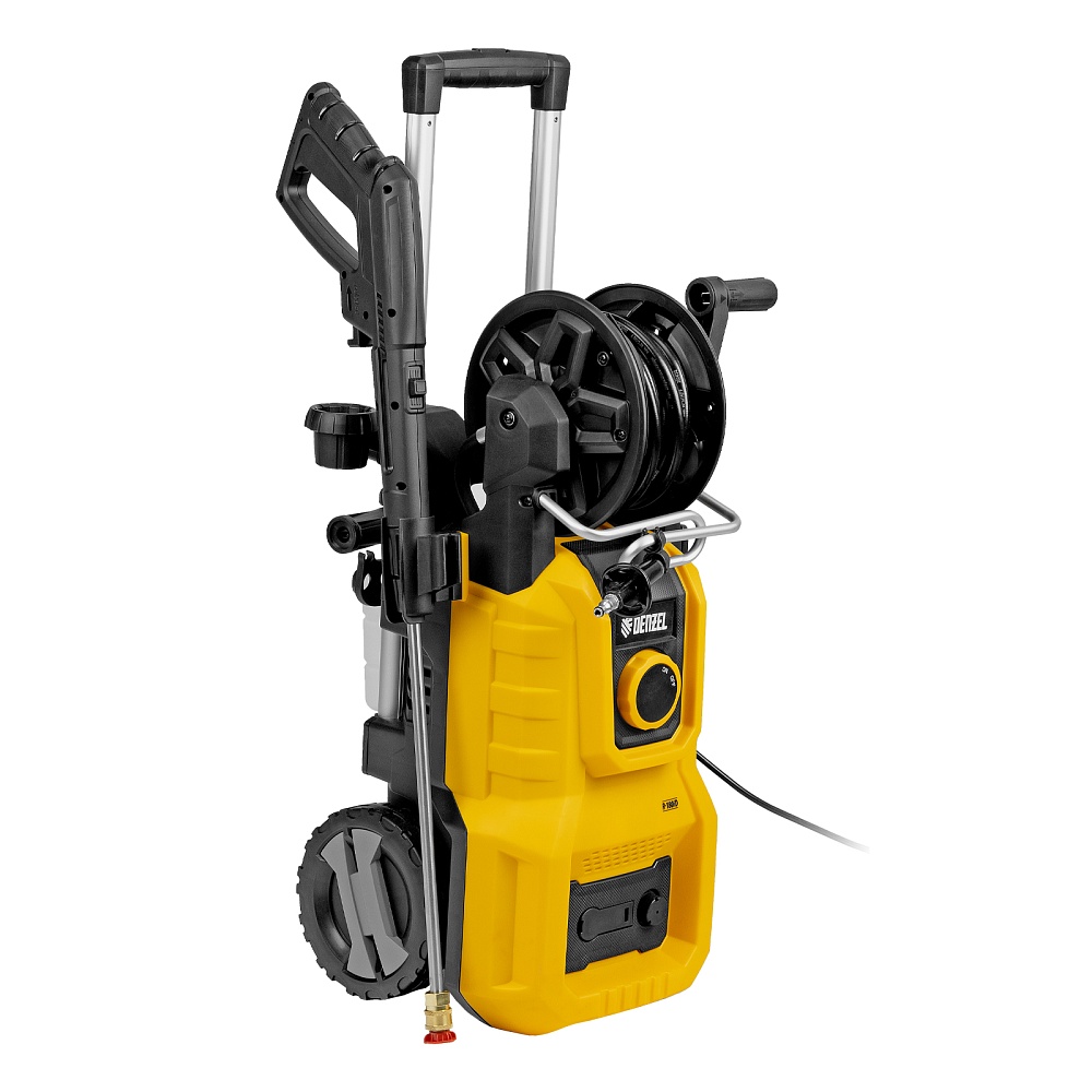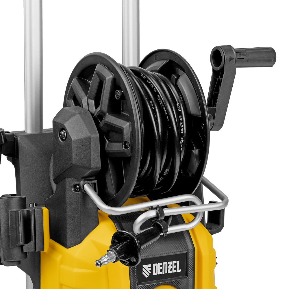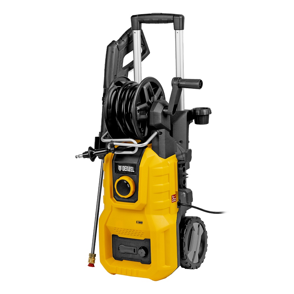 <p>Моечная машина высокого давления Denzel R-180iD 58266 мощностью 2000 Вт, с барабаном и асинхронным двигателем, используется для мытья дорожек, тротуаров, фасадов зданий, автомобилей, окон, садовой мебели и инвентаря. Максимальное давление составляет 180 бар, производительность — 420 л/ч. Мойка подключается к водопроводной сети, а в случае ее отсутствия может забирать воду из любого открытого резервуара, работая в режиме самовсасывания. Надежная алюминиевая помпа со стальными плунжерами обеспечивает стабильное давление даже при длительном интенсивном использовании. Мойка высокого давления незаменима на дачном участке.</p><h2>Преимущества</h2><ul><li>Надежность — асинхронный двигатель устойчив к нагрузкам и не требует сложного обслуживания.</li><li>Максимально эффективное очищение — к мойке прилагается внешний пенокомплект с функцией улучшенного пенообразования, быстросъемное крепление позволяет устанавливать его на пистолет одним движением.</li><li>Выбор оптимального угла распыления — машина поставляется с 3 насадками: 0°, 25° и 40°.</li><li>Быстрая подготовка к работе — быстросъемный адаптер упрощает подключение шланга подачи воды.</li><li>Качественная фильтрация — посторонние частицы задерживаются на входе, что защищает помпу от поломки.</li><li>Защита от случайного пуска — перед началом работы необходимо разблокировать рычаг моечного пистолета.</li><li>Защита от превышения допустимого давления — машина оснащена перепускным клапаном, пневматическое реле останавливает насос при отпущенном рычаге пистолета и запускает после нажатия на курок.</li><li>Термозащита — производитель предусмотрел датчик температуры, электродвигатель автоматически отключается при перегреве.</li><li>Максимально комфортное передвижение — длина шнура питания составляет 5 м, длина шланга высокого давления увеличена до 8 м.</li><li>Удобное использование — функциональный барабан подключен к магистрали высокого давления, поэтому вы можете разматывать и убирать шланг на барабан, не отсоединяя его от мойки.</li><li>Степень защиты IPX5 — внутренние компоненты надежно изолированы от попадания воды.</li><li>Мобильность — благодаря колесам и телескопической рукоятке машину удобно перемещать по участку.</li><li>Несложный уход — в комплект поставки входит игла для прочистки сопла.</li><li>Продуманное хранение — в конструкции предусмотрен кронштейн для кабеля, а также держатели для аксессуаров.</li><li>Гарантия 3 года — надежность техники подтверждена производителем.</li></ul>