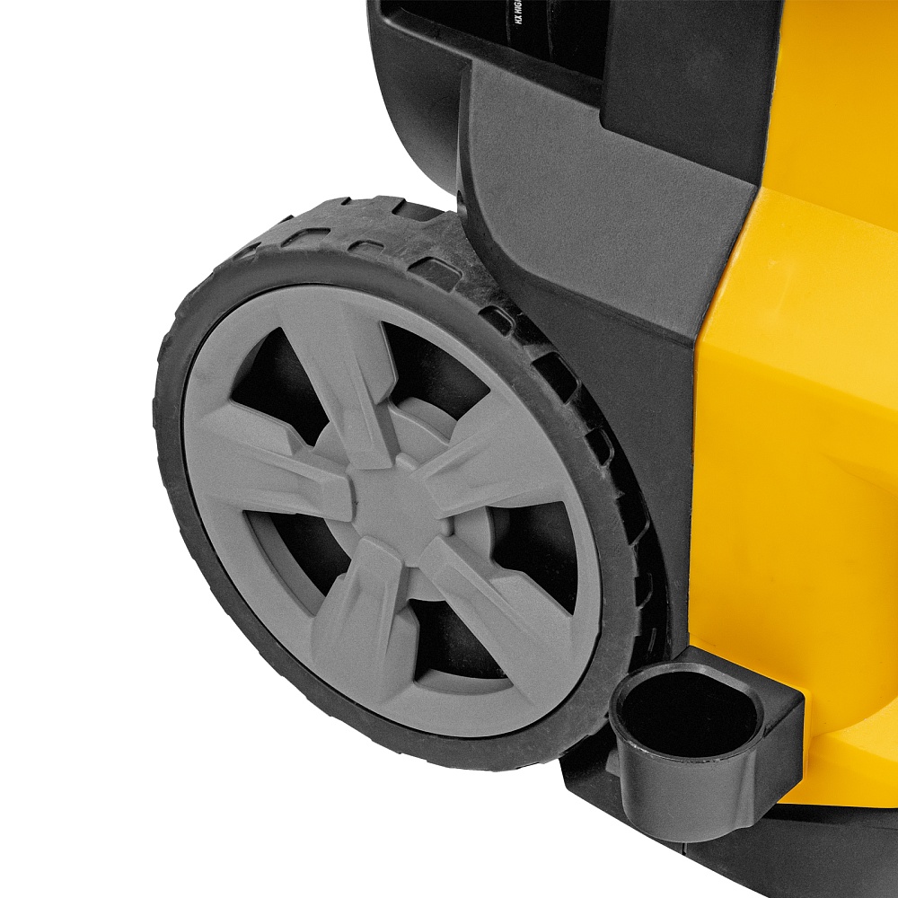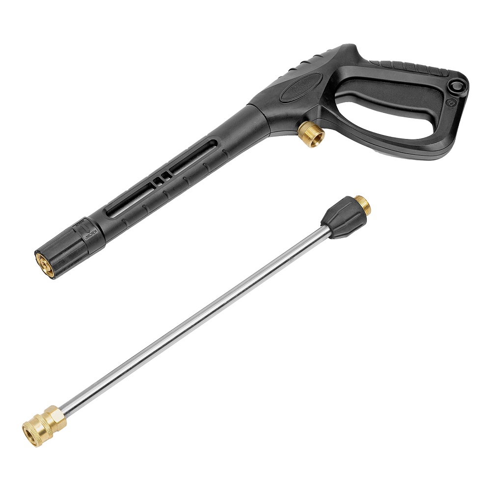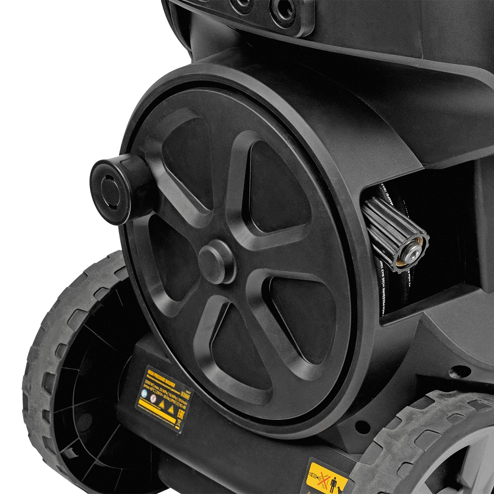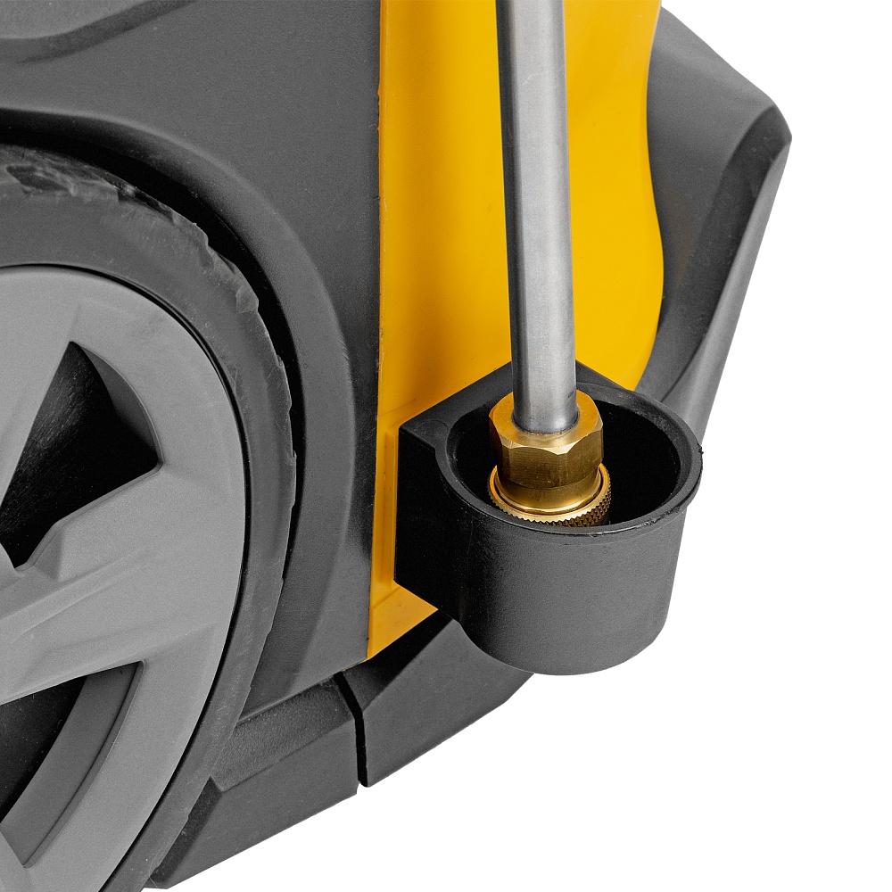 Мойка высокого давления, Барабан для шланга (установлен), Шланг высокого давления (установлен), Пистолет, Удлинитель пистолета, Сменные сопла 3 шт, Пеногенератор с бачком для моющего средства, Входной штуцер с фильтром, Быстросъемный коннектор шланга, кронштейн-держатель пистолета, Кронштей сетевого кабеля, Игла для прочистки сопла, Инструкция с гарантийным талоном