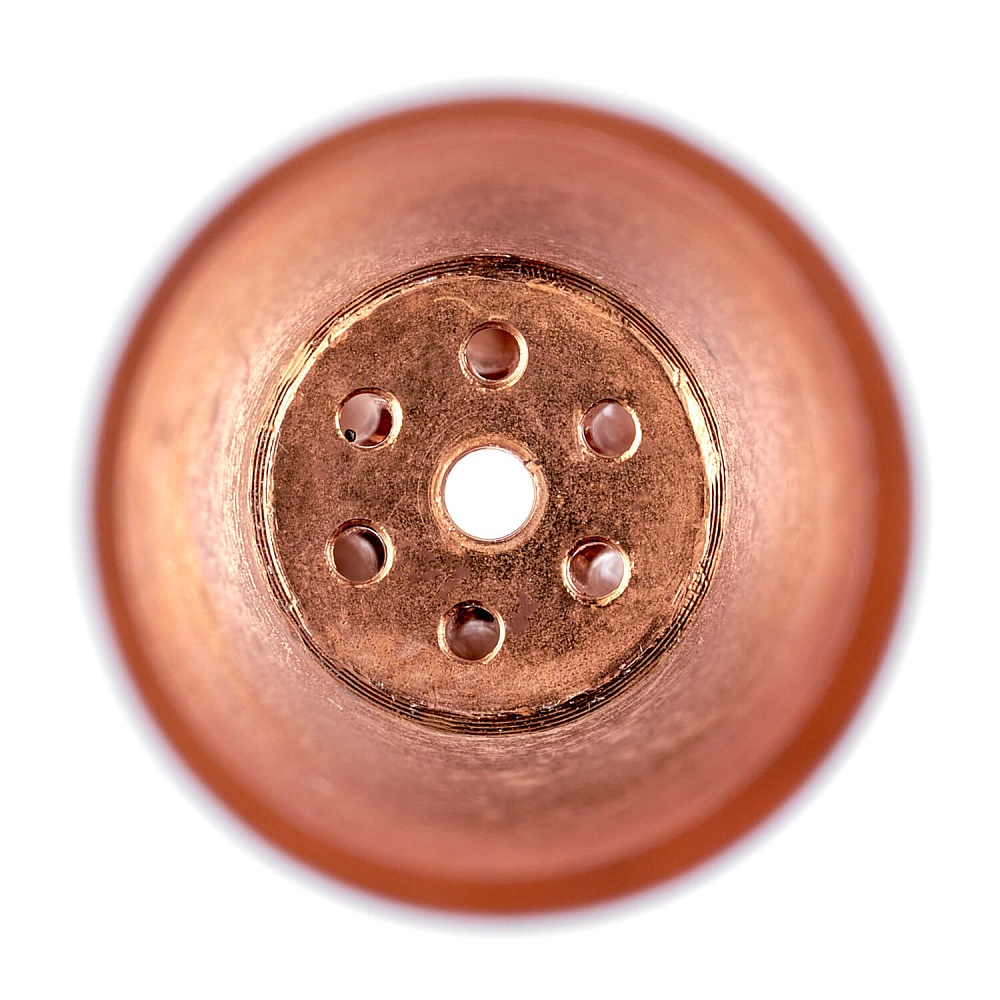 Медный наружный мундштук для ацетиленового инжекторного резака Р3А. Маркировка мундштука №2А. Толщина разрезаемого металла зависит от установленного внутреннего мундштука.