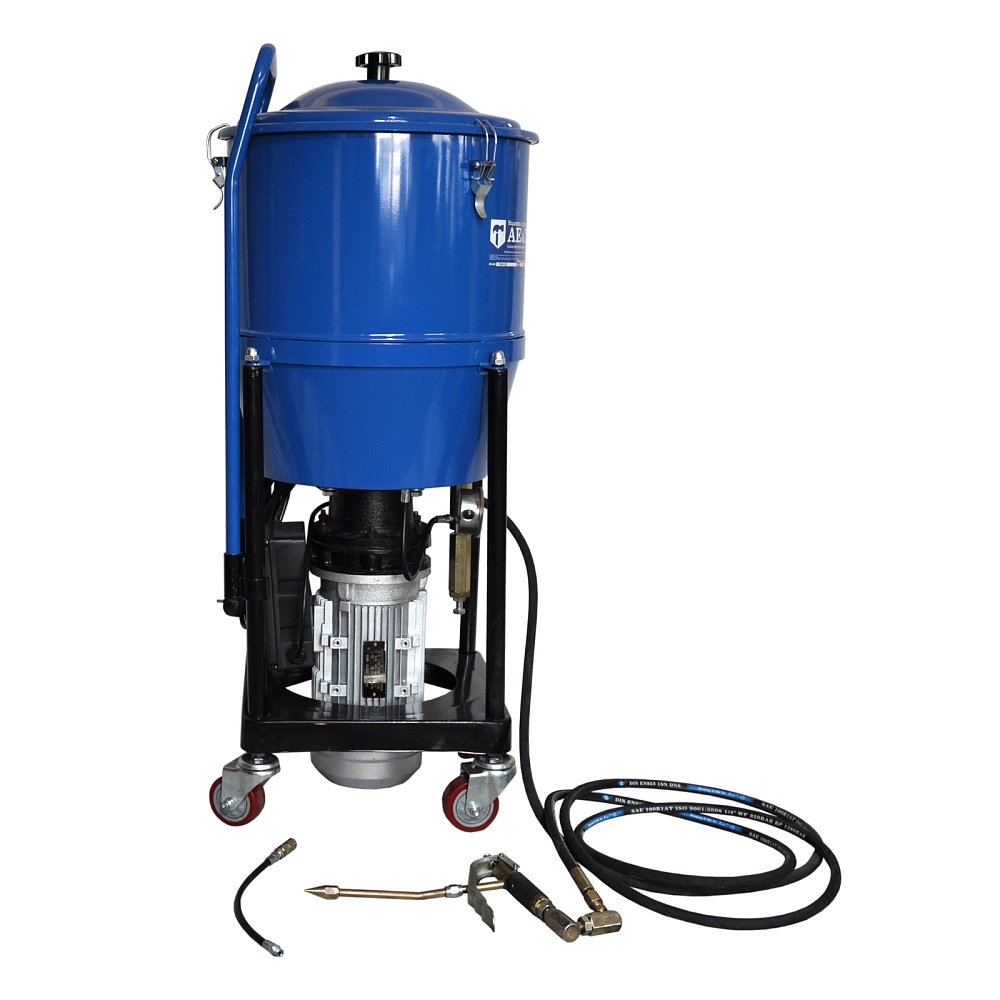 Солидолонагнетатель с электроприводом оснащен вместительным баком объемом 50 литров и мощным двигателем, который автоматически отключается при понижении давления. Устойчивая колесная база с двумя маневренными колесами позволяет без труда перемещать установку по рабочему пространству.
