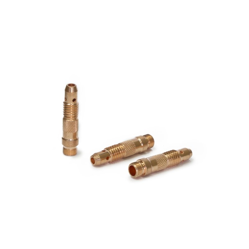 Держатель цанги – устройство для крепления цанги в сопле аргонодуговой горелки. С помощью отверстий в цангодержателе защитный газ во время TIG сварки подаётся к сварочной ванне и защищает её от вредного воздействия кислорода.