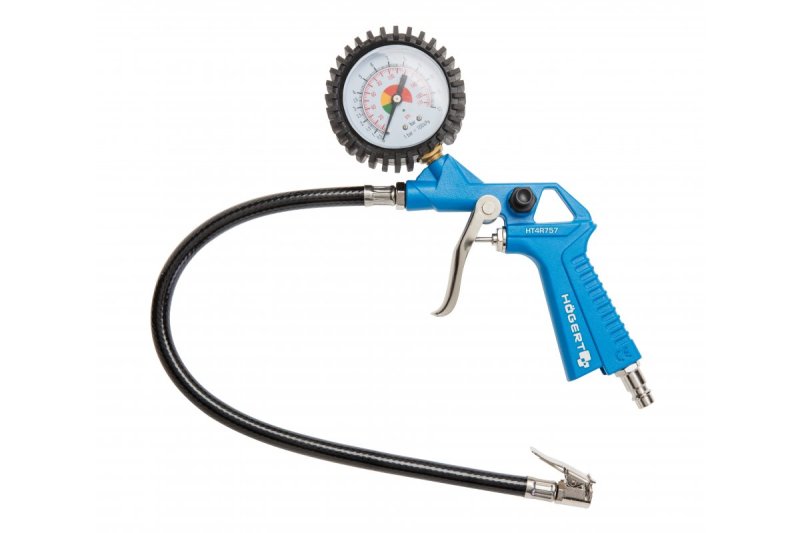 Пистолет для накачки с манометром универсального применения. Пригоден как во время домашних работ, так и в мастерских или автосервисах.