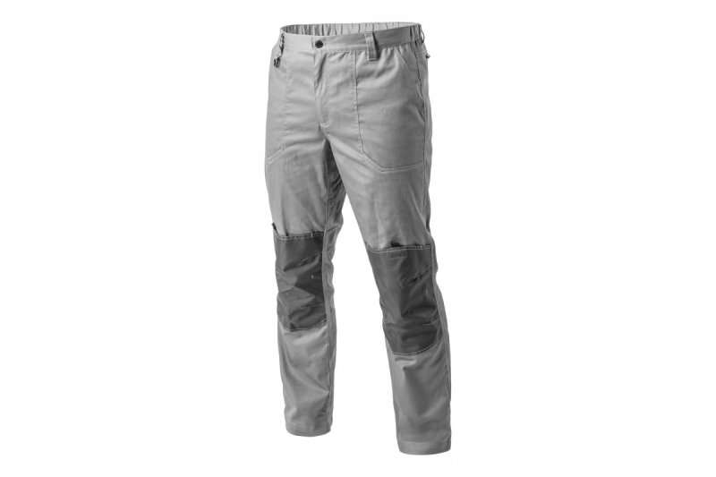 Брюки доступны в стильном светло-сером цвете с синими акцентами и широкой гамме размеров (от S до 3XL). Идеально подходит для производственных и строительных рабочих. Также рекомендуется для слесарей, сервисных и технических специалистов.