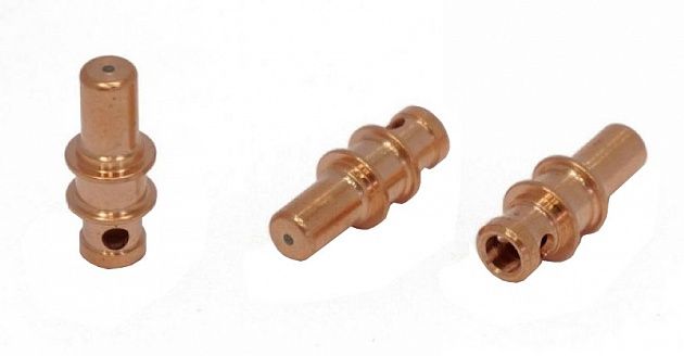 Катод - расходная часть плазмотрона. Оснастку изготавливают из сплава меди и латуни. Данный сплав обладает отличными показателями токопроводимости, высокими прочностными характеристиками, а так же способствует лучшему теплоотводу. Чаще всего для работы в нейтральных плазмообразующих средах в качестве сердечника электрода используют вольфрам, в окислительных средах применяют катоды из циркония или гафния.