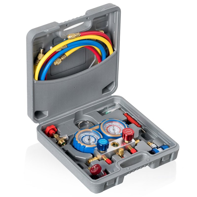Набор инструментов и приспособлений Kraftwell KRW-MGS-2 для тестирования (вакуумирования) и заправки систем кондиционирования.