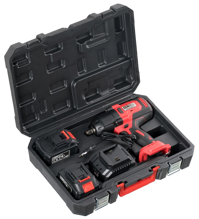 Аккумуляторный гайковерт KRAFTWELL, модель KRW1500IW-Eс ударным механизмом развивает крутящий момент 1500 Нм. Размер посадочного квадрата составляет 1/2”, что позволяет работать с ударными головками от 10 до 27 мм. Поставляется в удобном пластиковом кейсе для переноски. В комплекте с гайковертом поставляются 2 аккумулятора емкостью 12,8 Ah каждый и зарядное устройство.