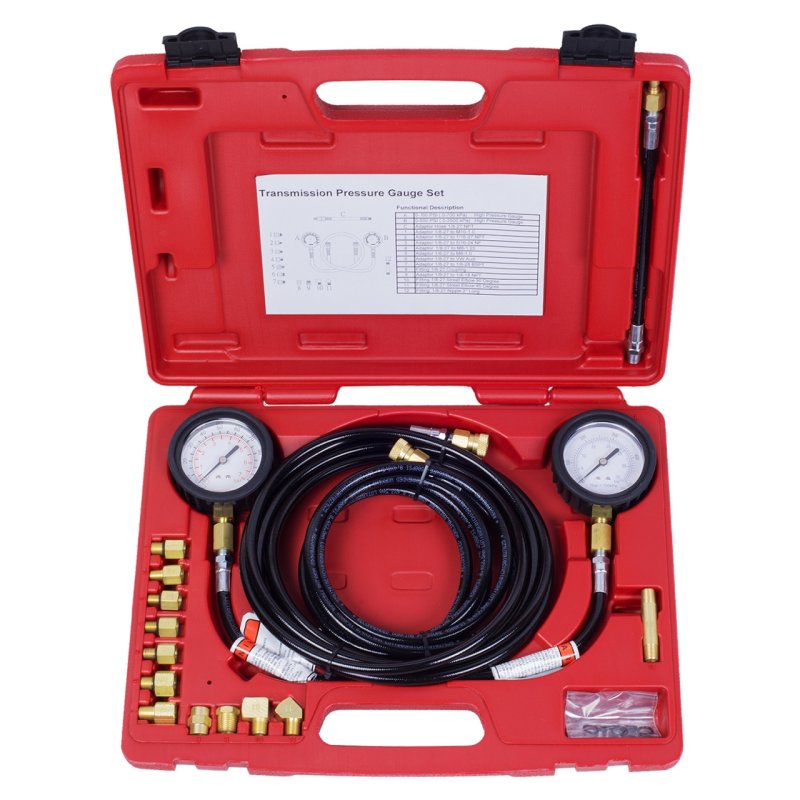 Манометр для измерения давления масла, 2 манометра 7 и 35 бар, комплект адаптеров МАСТАК 120-20023C предназначен для диагностирования давления масла в КПП, тормозных системах, а также системах ABSевропейских, японских, корейских, американских марок автомобилей.