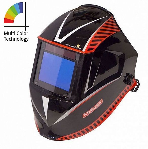 SUN-9 MAX EXPERT – новинка 2017-го модельного года в ассортименте AURORA. Новая концепция блока светофильтра - EXPERT - отличается от предшественников улучшенными характеристиками оптического класса 1/1/1/1 по рассеиванию света, однородности затемнения и угловой зависимости; уникальным диапазоном степени затемнения от 3DIN и новой панелью управления на внутренней стороне щитка. Съёмный элемент питания с продолжительным сроком службы, может быть заменён сварщиком самостоятельно, в случае необходимости. Щиток может быть дооснащён увеличительными стёклами. Маска SUN-9 может использоваться вместе с респиратором и устанавливаться на строительную каску.
