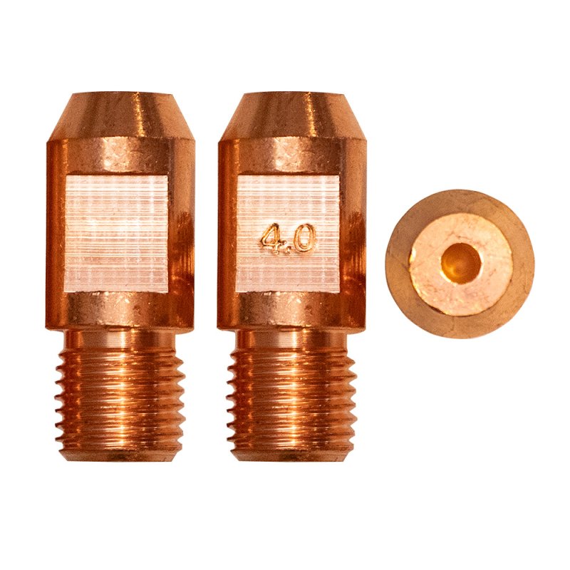 Наконечник – расходная часть MIG/MAG горелки, которая обеспечивает токосъём в процессе сварки, поэтому наконечники, так же называют контактными. Кроме того, через наконечник в процессе сварки подаётся проволока. Для оптимальной работы и идеального контакта необходимо, чтобы диаметр отверстия наконечника и сечение проволоки – совпадали.