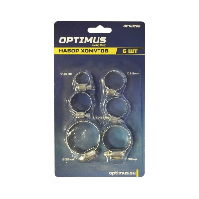 OPT-HT08 Хомуты червячные набор 6шт. 10-38 OPTIMUS