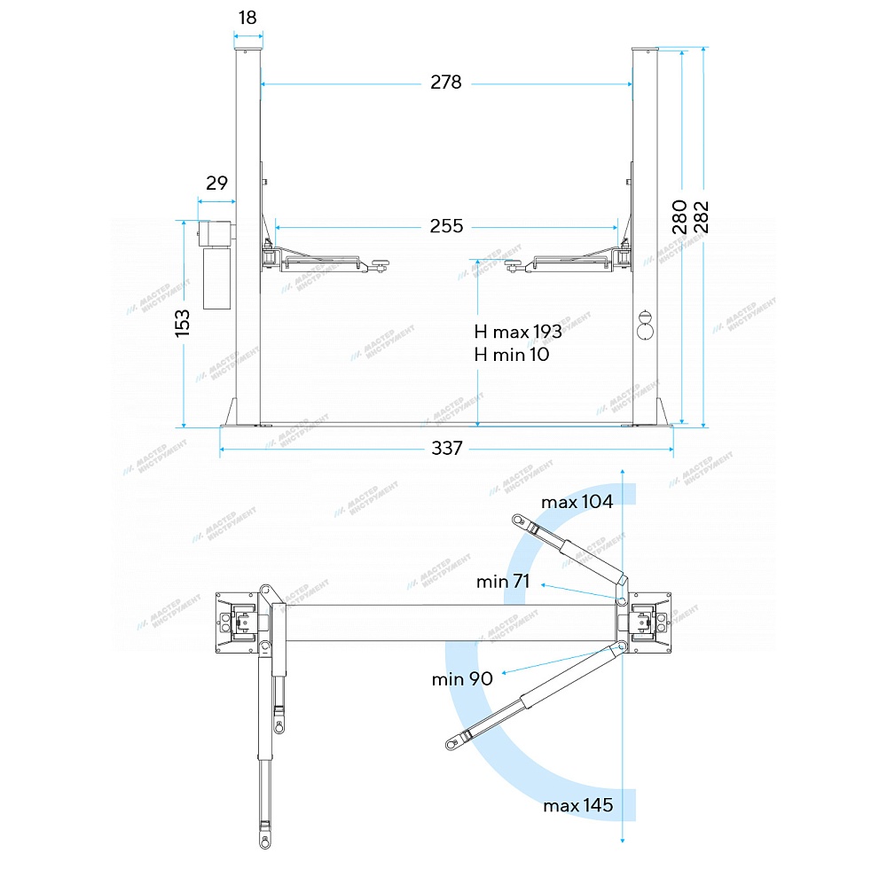 Подъемник двухстоечный 4 т с нижней синхронизацией, H=2,8 м, 220 В, синий . STX40TT_220 купить в Волгограде цена ✅ - Все для СТО